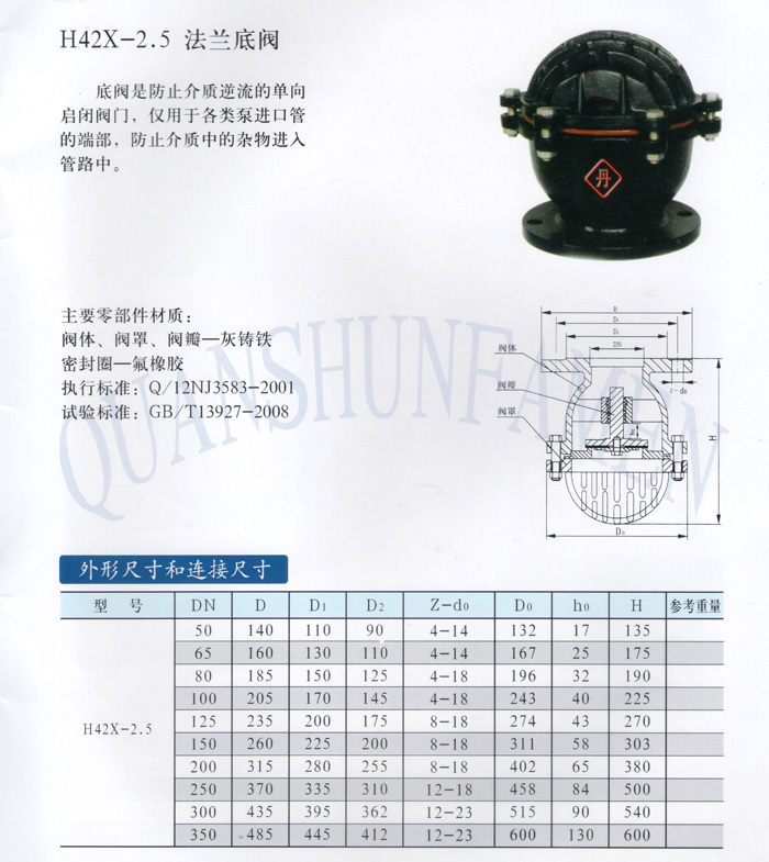 H42X-2.5 法蘭底閥