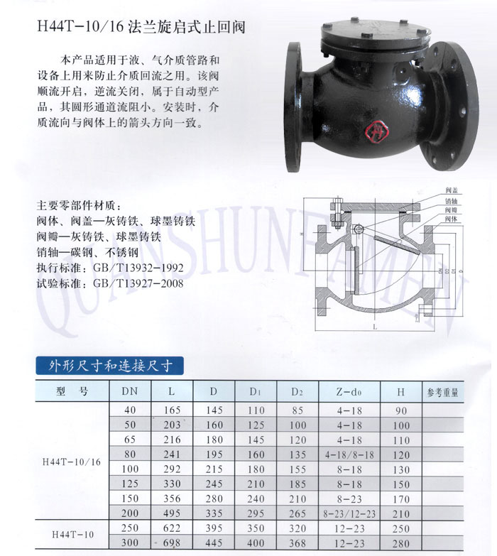 H44T-10/16法蘭旋啟式止回閥